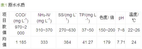 原水來自某生物制藥有限公司,該公司的綜合廢水處理采用“調(diào)節(jié)池+一級(jí)水解酸化池+CASS池+二級(jí)水解酸化池+接觸氧化池+二沉池”工藝,本試驗(yàn)用水取自該公司污水處理廠的一級(jí)水解酸化池出水,一級(jí)水解酸化池的進(jìn)水是經(jīng)過調(diào)節(jié)池和物理處理后的出水。該公司主要生產(chǎn)輔酶Q10,廢水主要污染物為生物發(fā)酵剩余的營(yíng)養(yǎng)物質(zhì)、生物代謝產(chǎn)物等。原水的水質(zhì)水量變化較大,其成分復(fù)雜,碳氮營(yíng)養(yǎng)比例失調(diào)(氮源過剩),硫酸鹽和懸浮物含量高,廢水帶有較重的顏色和氣味,易產(chǎn)生泡沫,含有具有抑菌作用的難降解物質(zhì)。原水水質(zhì)情況見表1。