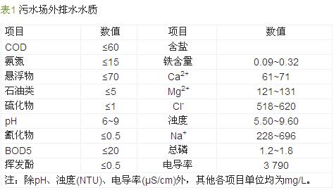 電滲析脫鹽裝置進水為污水場外排水,在污水場正常運轉時,其外排水水質(zhì)如表1。