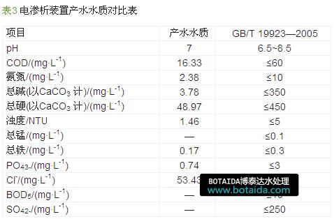 將電滲析裝置產(chǎn)水與《城市污水再生利用/工業(yè)用水水質(zhì)》(GB/T 19923—2005)中要求的標準進行對比,結果見表3。