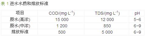 該工程設(shè)計(jì)處理能力為320 t/d,其中生產(chǎn)廢水約為80 t/d,車間沖洗水、生活污水 約為240 t/d,其水質(zhì)如表 1所示。