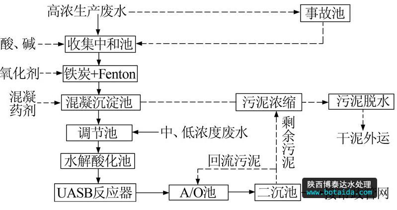 圖 1 醫(yī)藥中間體生產(chǎn)廢水處理工藝流程