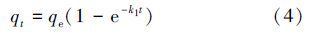 準(zhǔn)一級動力學(xué)模型基于假定吸附受擴散步驟控制,吸附速率正比于平衡吸附量與t時刻吸附量的差值,其速率方程為: