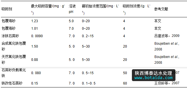 表3 文獻(xiàn)報道的負(fù)載改性砂吸附劑的磷吸附效果