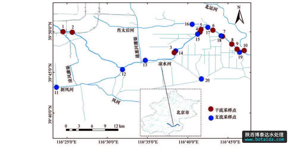 圖1 涼水河采樣點(diǎn)示意圖