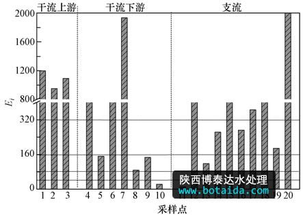 圖3 表層沉積物中汞的潛在生態(tài)風(fēng)險(xiǎn)指數(shù)
