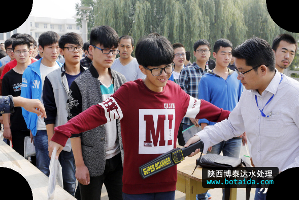 “最嚴高考年”不僅僅是針對考試中的作弊處罰,高考生進場要安檢,將有金屬探測儀“上陣檢測”。戴眼鏡的考生要取下眼鏡,耳朵、腋下、手腕處、腰部、皮帶扣內(nèi)側(cè)、衣袋、鞋襪內(nèi)等等都是檢查重點。圖為2016年6月7日,在江蘇連云港市贛榆高級中學考點,監(jiān)考老師對入場的考生進行檢查。思維/視覺中國