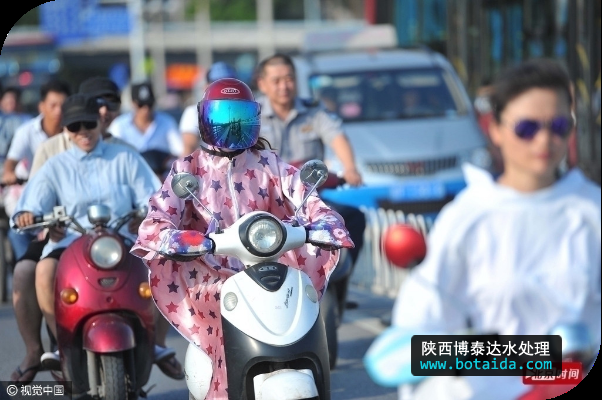 2016年6月2日,廣西南寧市,連日高溫高濕的酷熱天氣,為防止暴曬,許多騎車出行的市民“全副武裝”都把自己嚴(yán)嚴(yán)實(shí)實(shí)的包裹起來,裹成“蒙面超人”。