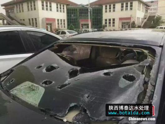 2016年6月13日,雞蛋大的冰雹襲擊山西長治,多輛汽車玻璃被砸碎。 中新網(wǎng) 圖