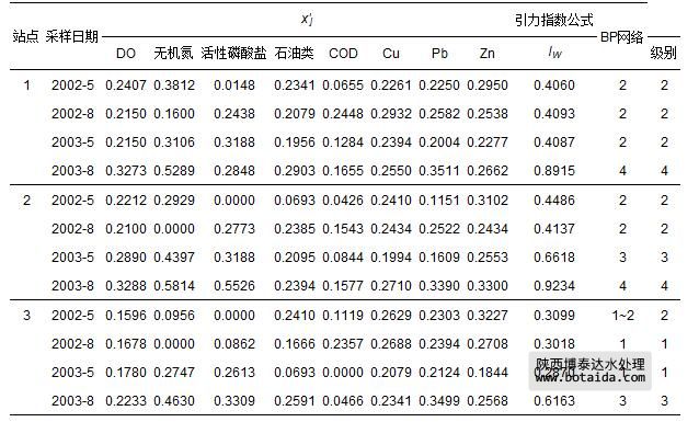 表 8 珠江口2002—2003年3個站點水質(zhì)指標(biāo)規(guī)范值 x′j和評價結(jié)果