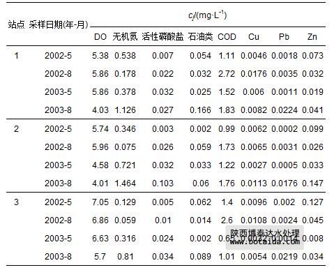 表 7 珠江口2002—2003年3個站點水質(zhì)指標(biāo)監(jiān)測數(shù)據(jù)cj