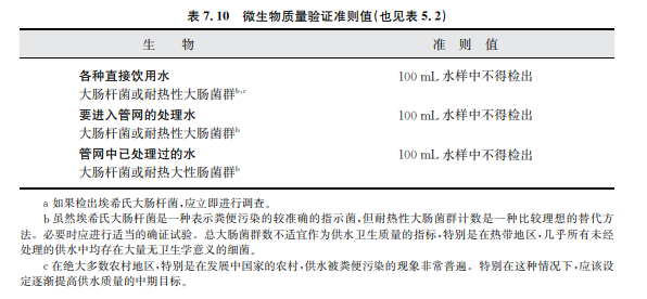 表7.10列出了飲用水的微生物質(zhì)量驗(yàn)證準(zhǔn)則值。表中的單個(gè)數(shù)值不能直接使用。應(yīng) 當(dāng)和本準(zhǔn)則及其他支持性文件中的信息資料配套使用并加以解釋。陜西博泰達(dá)水處理為您提供服務(wù)