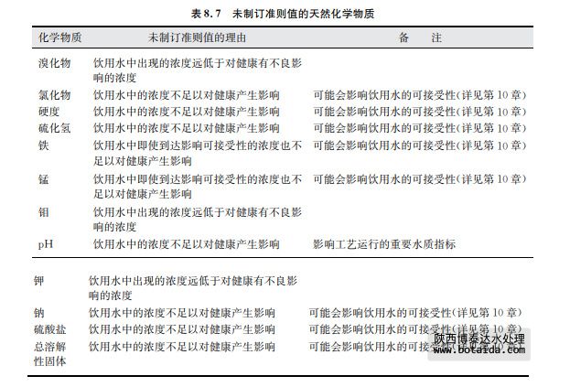 表8.7列舉了尚未制訂準則值的天然化學物質(zhì),并在表中說明了理由,其資料概覽見第 12章。