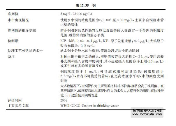 ?。桑校茫酉嚓P(guān)研究資料表明成人經(jīng)口攝入的銅濃度可接受范圍的上限是不確定的,但是 成人攝入量通常范圍是數(shù)毫克每天(每天大于2或3mg),而不是更多的量。銅不良效應(yīng) 的評估僅依據(jù)攝入含銅污染的水后腸胃道所起的不良效應(yīng)。目前有關(guān)研究的毒理學(xué)資料 建立在實(shí)驗(yàn)動物的基礎(chǔ)上,不能適用于人類的情況,不能用于確定銅濃度可接受范圍的上 限,但有助于確定不良反應(yīng)的作用方式。由于觀察到的腸胃道反應(yīng)受到消化道內(nèi)濃度較 高(比24h的攝入量還要高)銅干擾,銅導(dǎo)致腸胃道反應(yīng)的研究結(jié)果必須謹(jǐn)慎使用。近 期的研究描述了引起腸胃道反應(yīng)的飲用水中銅的閾值,但仍存在銅對敏感人群長期效 應(yīng)的不確定性,例如,具有 Wilson病(肝豆?fàn)詈俗冃裕┗蚝推渌w內(nèi)銅平衡代謝障礙 的人群。