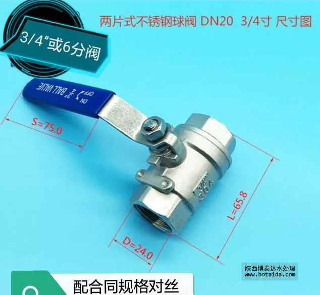 下圖為3/4′又稱6分閥(DN20),公稱通徑20,通常內徑約在24mm左右。