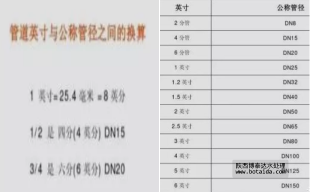 下圖為管道英寸與公稱尺寸之間對應關系:
