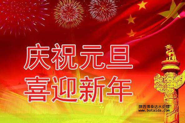 在此元旦來臨之前,陜西博泰達水處理科技有限公司祝愿各位新老客戶,新老朋友及全國的人民:闔家歡樂,萬事順達,新起點新氣象!