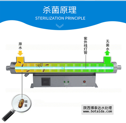 紫外線滅菌器:利用紫外線(波長(zhǎng)200~400nm)對(duì)養(yǎng)殖用水進(jìn)行消毒,殺滅水中各種病微生物。