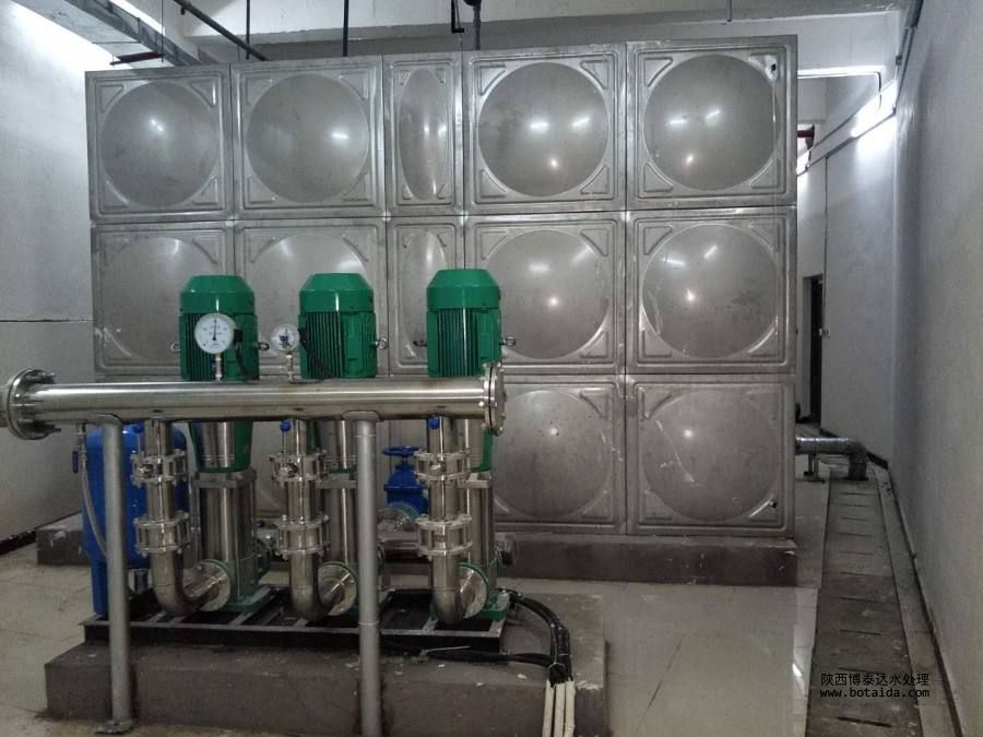 2、無負(fù)壓供水設(shè)備,無需水箱,供水系統(tǒng)自帶穩(wěn)流罐,能蓄少量的水。