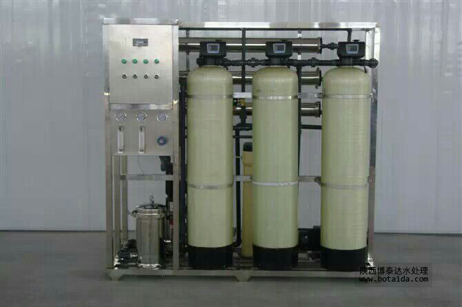 微型水處理設(shè)備的工藝流程:原水→原水加壓泵→多介質(zhì)過濾器→活性炭過濾器→軟水器→精密過濾器→一級(jí)反滲透→PH調(diào)節(jié)→中間水箱→二級(jí)反滲透→純水箱→純水泵→微孔過濾器→用水點(diǎn)。