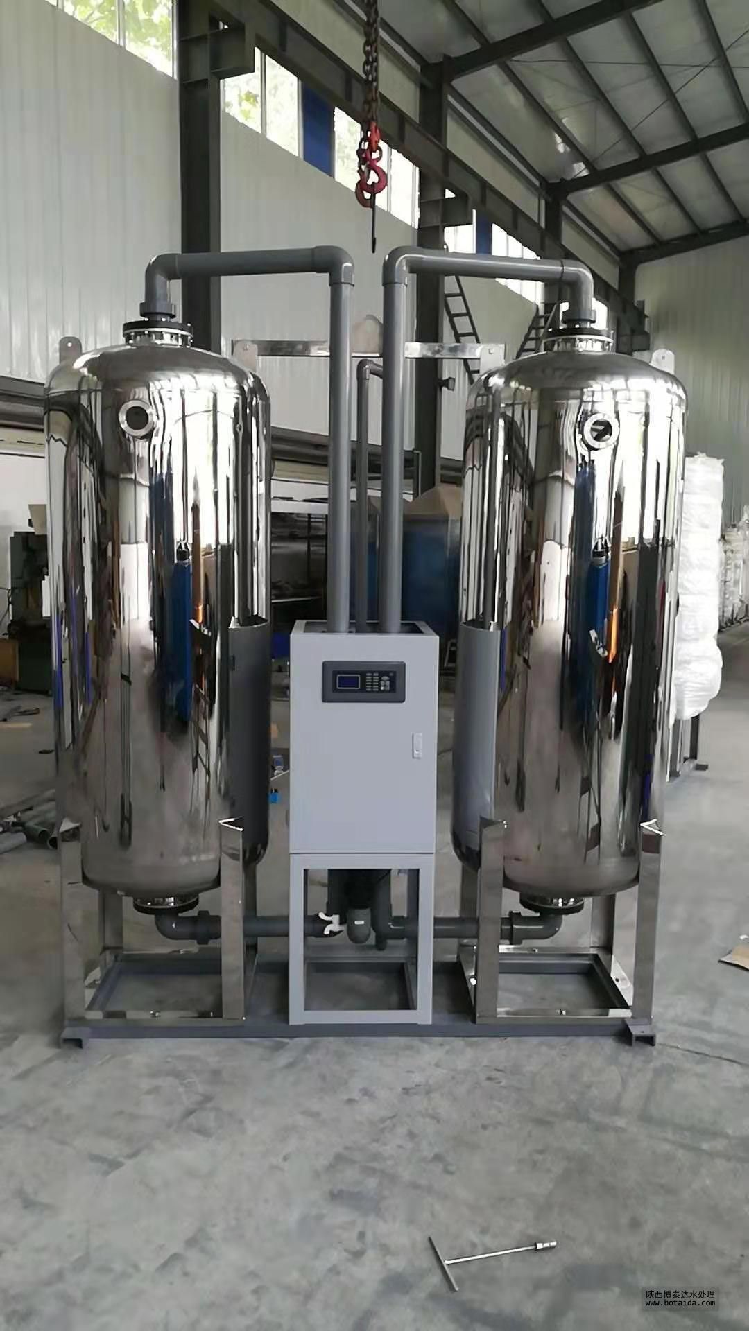 2.在全自動軟化水設(shè)備工作一段時間后,樹脂的交換能力被水中的鈣鎂離子所飽和時,此時由鹽罐自動給水,用鹽水對離子交換樹脂進行再生處理,以恢復(fù)樹脂的交換能力。