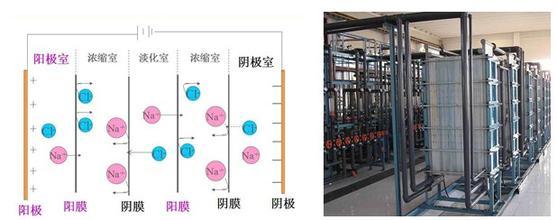 電滲析是利用離子交換膜對溶液中陰陽例子的選擇透過性,以直流電場為推動力的膜分離方法,它是使溶質和溶液分離的一種物理化學過程。