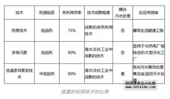 如低溫?zé)崂眉夹g(shù)對(duì)比表所示,較常規(guī)熱泵技術(shù)和多級(jí)閃蒸技術(shù),低溫多效蒸發(fā)在熱利用率、技術(shù)工藝耦合污水處理等方面具有明顯優(yōu)勢(shì),代表了相關(guān)技術(shù)領(lǐng)域的發(fā)展方向,是開展余熱利用和污水處理耦合技術(shù)的重點(diǎn)方向。
